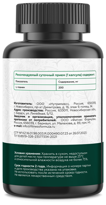 L-теанин, твердая желатиновая капсула, мальтодекстрин (наполнитель).