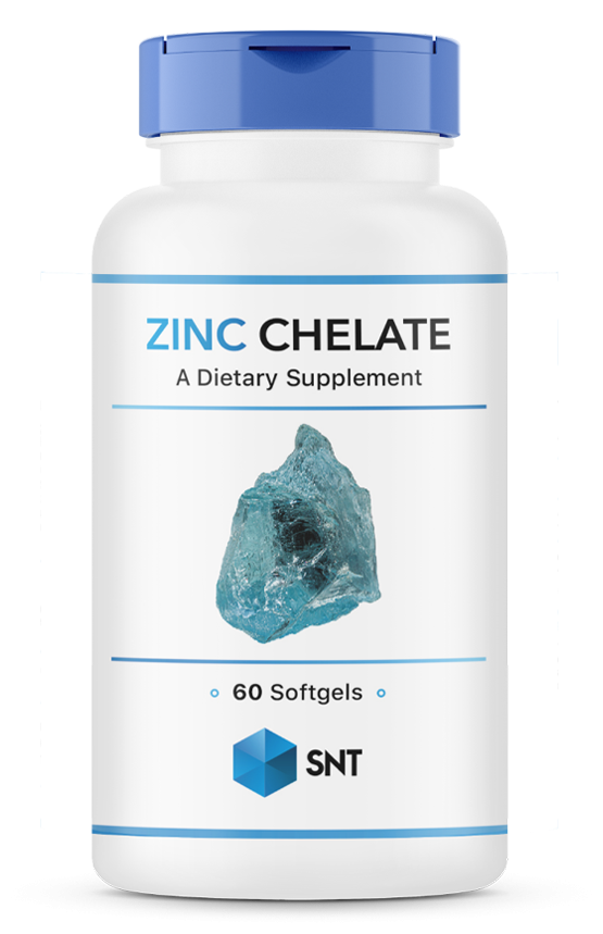 Хелатные формы цинка с наилучшим усвоением. Цинк является иммуномодулятором, тормозя распространение вируса в организме и стимулируя выработку клеток Т-киллеров. Этот минерал участвует в образовании тестостерона и инсулина, необходим для нормализации сахара в крови, влияет на рост волос, состояние ногтей и на секрецию сальных желез, а также укрепляет кости.