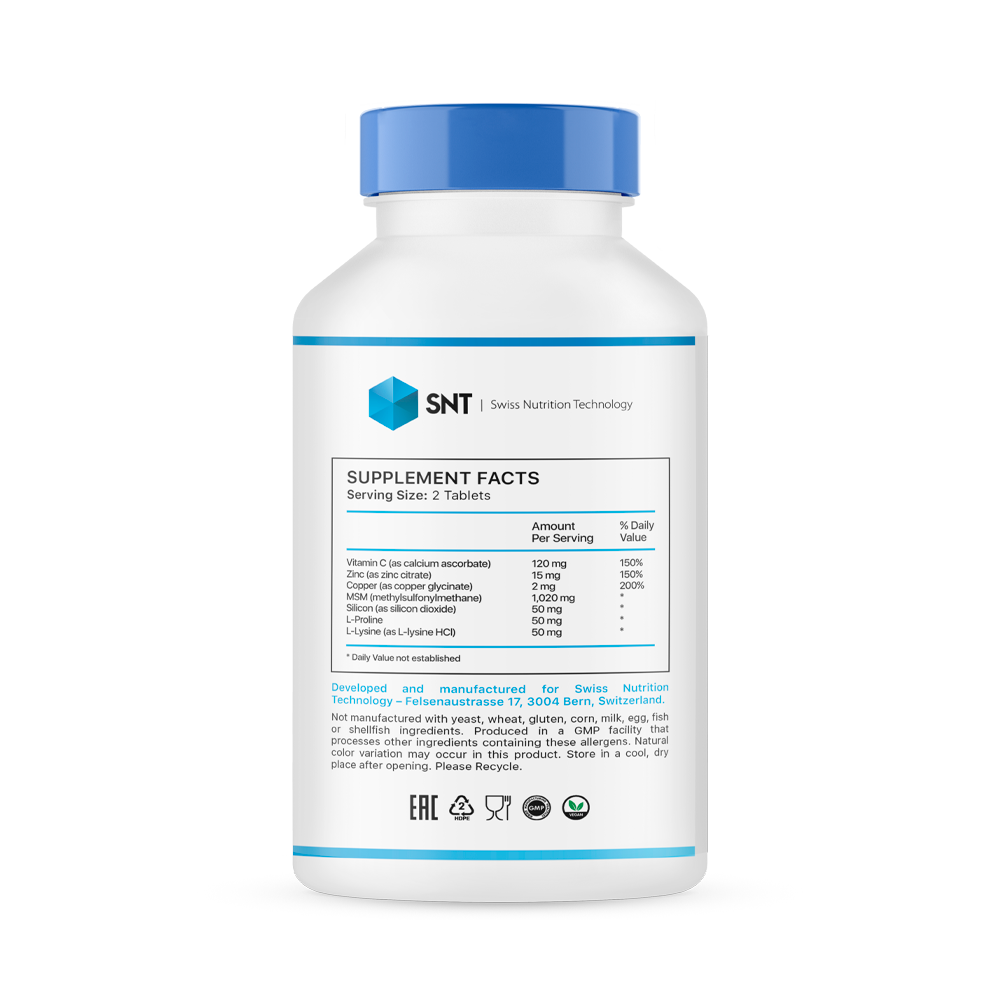 - Метилсульфонилметан. Он нужен для восстановления упругости и эластичности кожи, активного синтеза коллагена и регулирования углеводного баланса в организме.