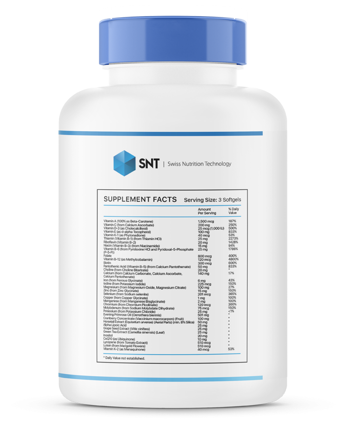SNT Lady Multi - мультивитаминный комплекс, созданный для поддержания и укрепления женского здоровья. Витамины и минералы в оптимальном сочетании насыщают организм питательными веществами и оказывают положительный эффект на репродуктивную систему. Натуральные растительные экстракты и масла в составе комплекса улучшают обменные процессы и способствуют укреплению иммунитета.