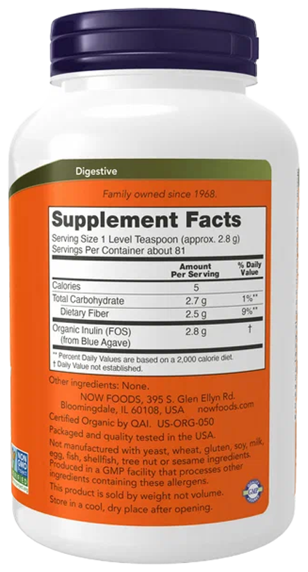 NOW Inulin Prebiotic Pure Powder Organic, 227 грамм