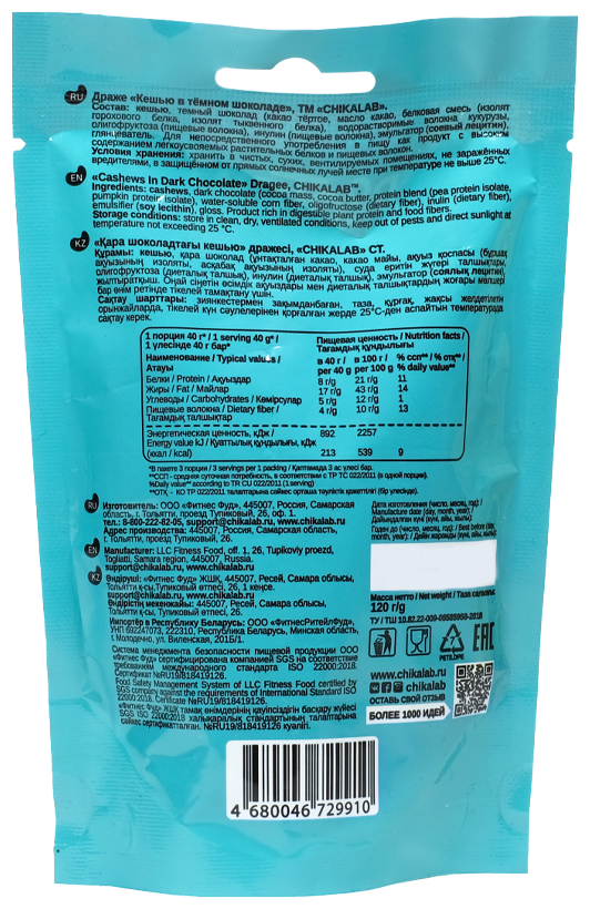 | CHIKABAR Протеиновое драже "Кешью в темном шоколаде" (120гр.) |