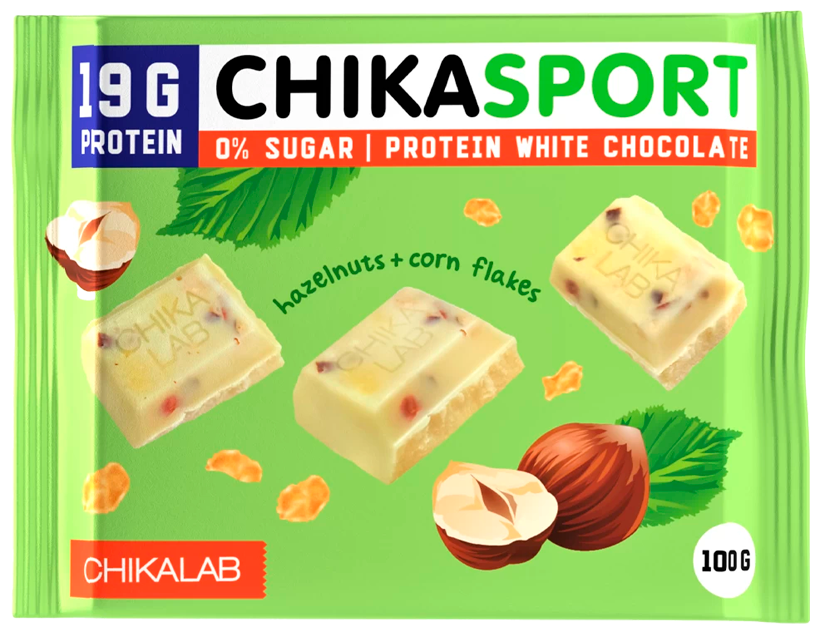 Chikalab Шоколад белый с фундуком и кукурузными чипсами, 100 грамм