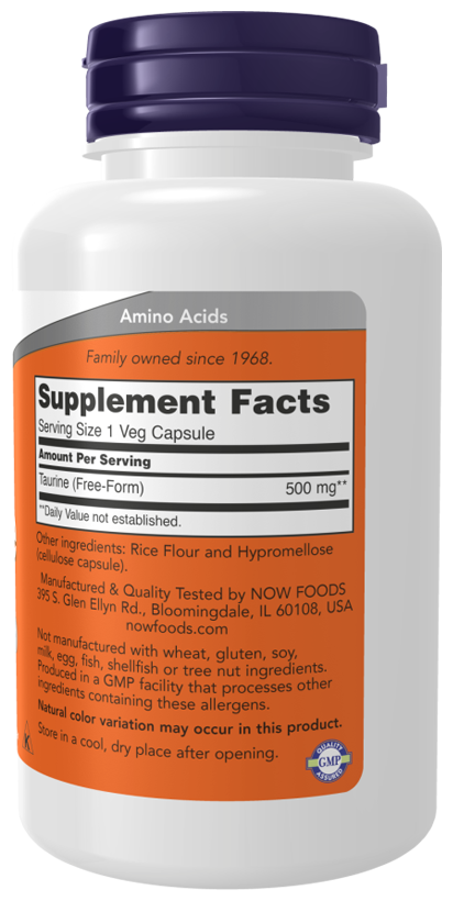 NOW Taurine 500 mg, 100 капсул
