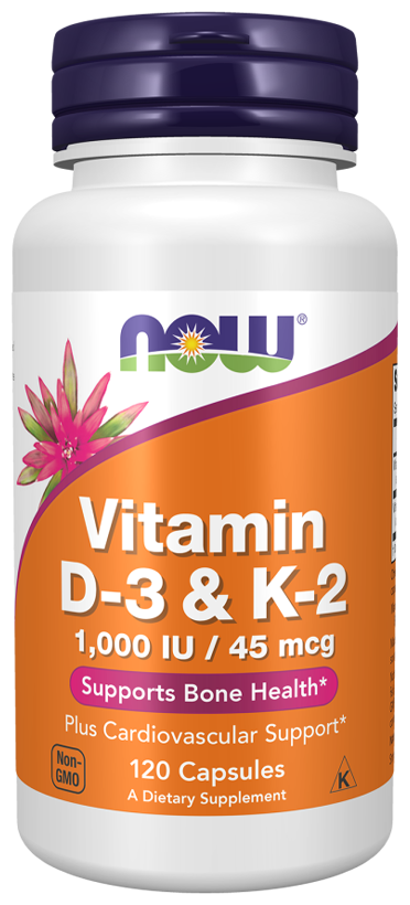 NOW Vitamin D-3 & K-2 1000 IU / 45 mcg, 120 капсул
