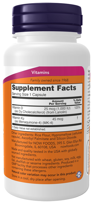 NOW Vitamin D-3/K2 1000mg (120 кап.)